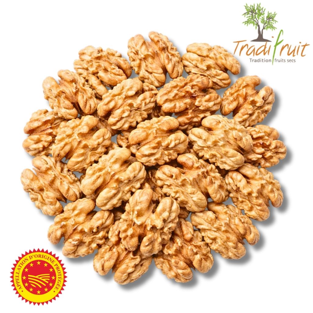 Description du produit : Cerneaux de noix moitiés blancs, origine Périgord – AOP, issus d’une sélection rigoureuse garantissant une couleur claire et homogène, signe de grande fraîcheur. Ils se distinguent par une texture croquante, une saveur douce et équilibrée, sans amertume, typique des noix du Périgord. Idéals pour la pâtisserie fine, la chocolaterie et toutes les préparations culinaires.