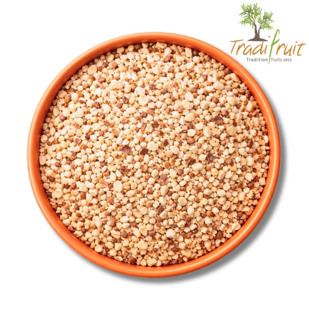 Description du produit : Noisettes soigneusement sélectionnées, grillées puis hachées avec précision afin d’obtenir un calibre régulier de 1 à 3 mm. La torréfaction maîtrisée développe des arômes intenses et gourmands, tout en préservant la texture croquante du fruit.