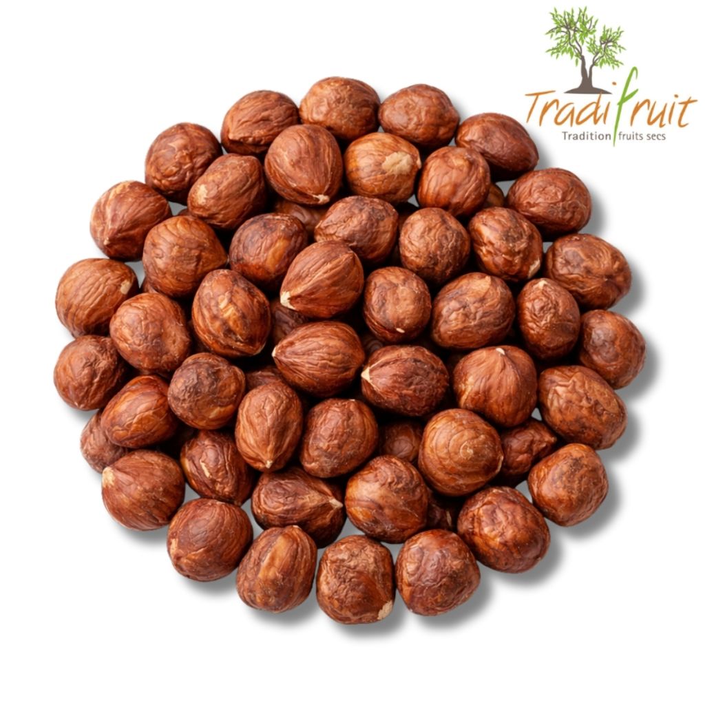 Description du produit : Noisettes du Levant naturelles, décortiquées puis soigneusement triées au calibre 13/15. Originaires de Turquie, elles se distinguent par leur forme ronde à légèrement irrégulière, leur peau brune foncée bien présente et leur aspect authentique.