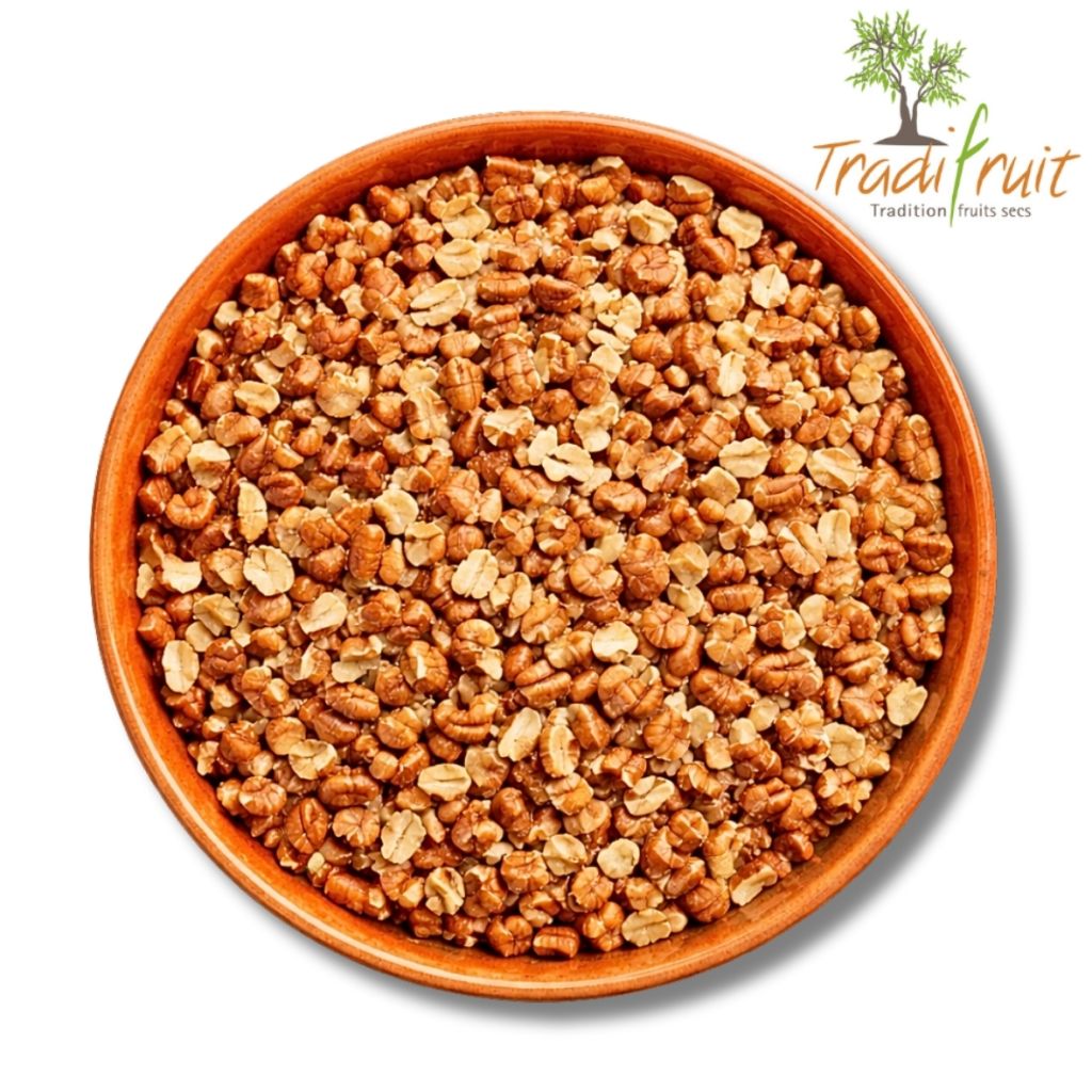 Description du produit : Noix de pécan hachées 0–12 mm, soigneusement sélectionnées pour une granulométrie régulière. Elles offrent une texture croquante et une saveur douce, naturellement sucrée et beurrée. Idéales pour la pâtisserie, la chocolaterie, les inclusions, toppings et préparations culinaires professionnelles.
