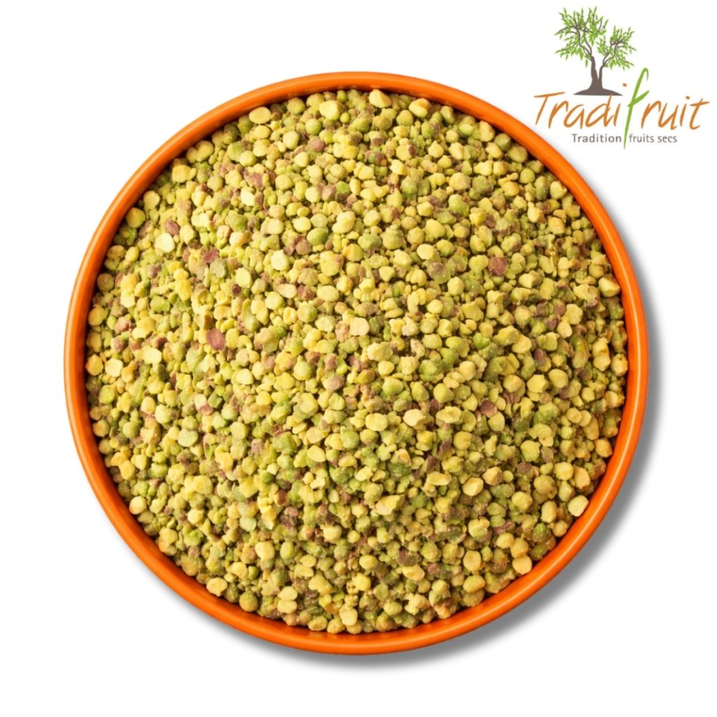 Description du produit : Pistache hachée verte, origine Iran, reconnue pour sa couleur verte intense et son arôme naturellement puissant. Issue de pistaches soigneusement sélectionnées, elle offre une texture régulière et un goût franc. Idéale pour la pâtisserie, la chocolaterie, les desserts et les préparations culinaires.